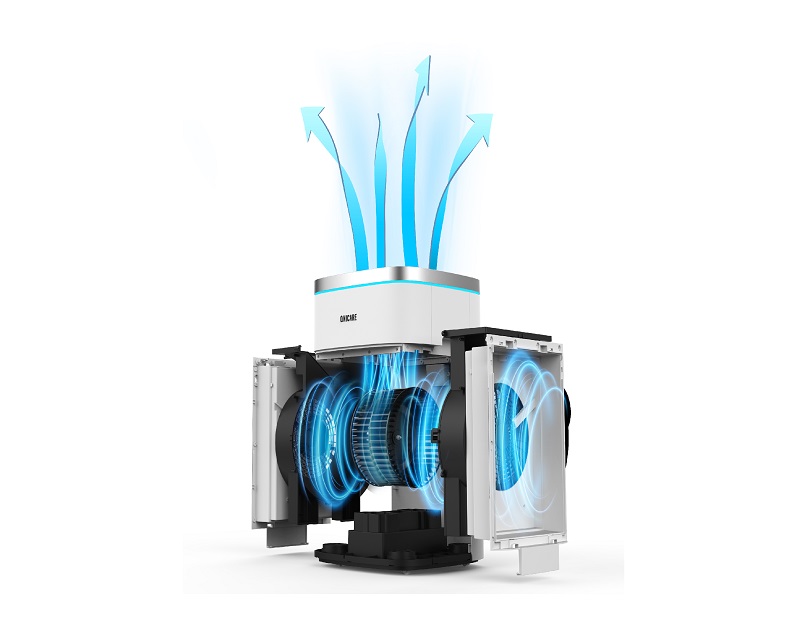 그리고 모터를 통해 바람을 보내는 것이 선풍기 같은 날개를 사용하는 방식이 아니라, 마치 물레방아처럼 원통에 수많은 날개가 있는 스타일을 채택했다. 그래서 이로 하여금 단순하게 한 방향으로만 바람을 보내는 것이 아니라, 마치 허리케인이 발생하는 듯한 효과를 주며 정화된 바람을 힘있게 위로 보내 공기 순환이 더욱 잘 되도록 해준다.