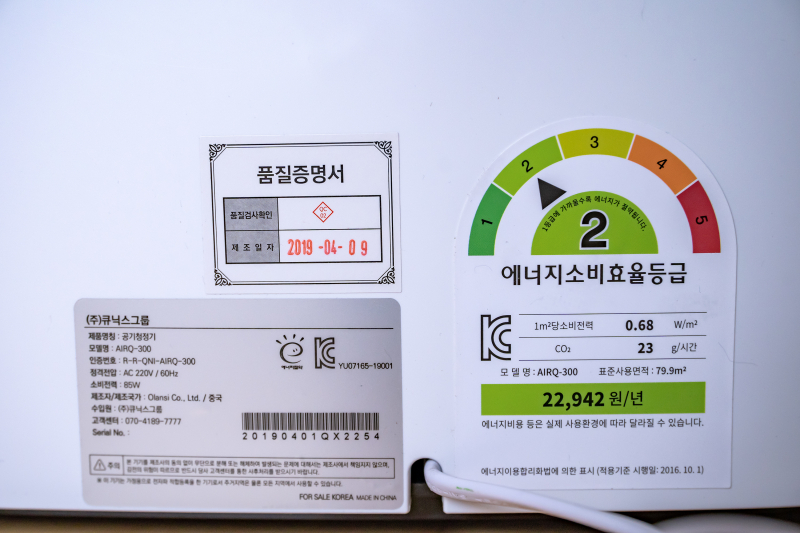 소비전력은 85W이며 에너지 효율 2등급을 보여주고 있다. 따라서 만약 누진세 미적용 기준으로 한 달에 24시간 사용을 해도 한 달 전기료는 약 1,920원 정도, 연간 22,942원 정도가 나온다. 그만큼 전기 소모량도 적다.