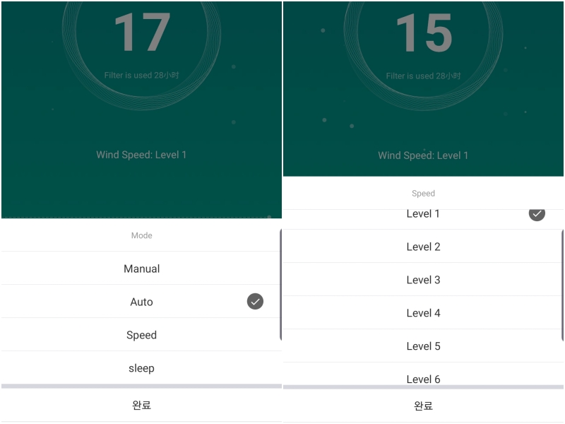 여기에 더해 자동 모드일 경우 각 단계에 따라 흡입과 순환 속도를 달리해 공기 청정을 자동으로 시도한다. 이 제품의 모드는 3가지로 자동 모드, 터보 모드, 수면 모드다. 그리고 풍속 모드를 누르면 모드가 해제되고 사용자가 풍속을 조절할 수 있는 수동 모드로 바뀐다.