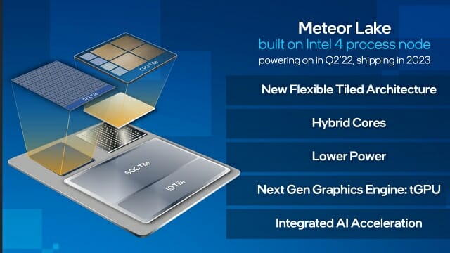 근본적인 설계 발상도 바꿨다. 인텔은 그동안 한 다이 안에 CPU와 내장 그래픽칩셋, 입출력 관련 다이를 한 데 넣은 모놀리식 방식으로만 프로세서를 만들었다. 그런데 내년부터 출시할 메테오레이크는 서로 다른 공정에서 생산된 타일 단위 반도체를 그릇 역할을 하는 베이스 타일 위에 얹는 방식으로 만든다. 또한 핵심 제품인 CPU 타일은 내부에서 만들지만 일부 제품은 외부 파운드리도 활용해 생산하겠다고 밝혔다.
