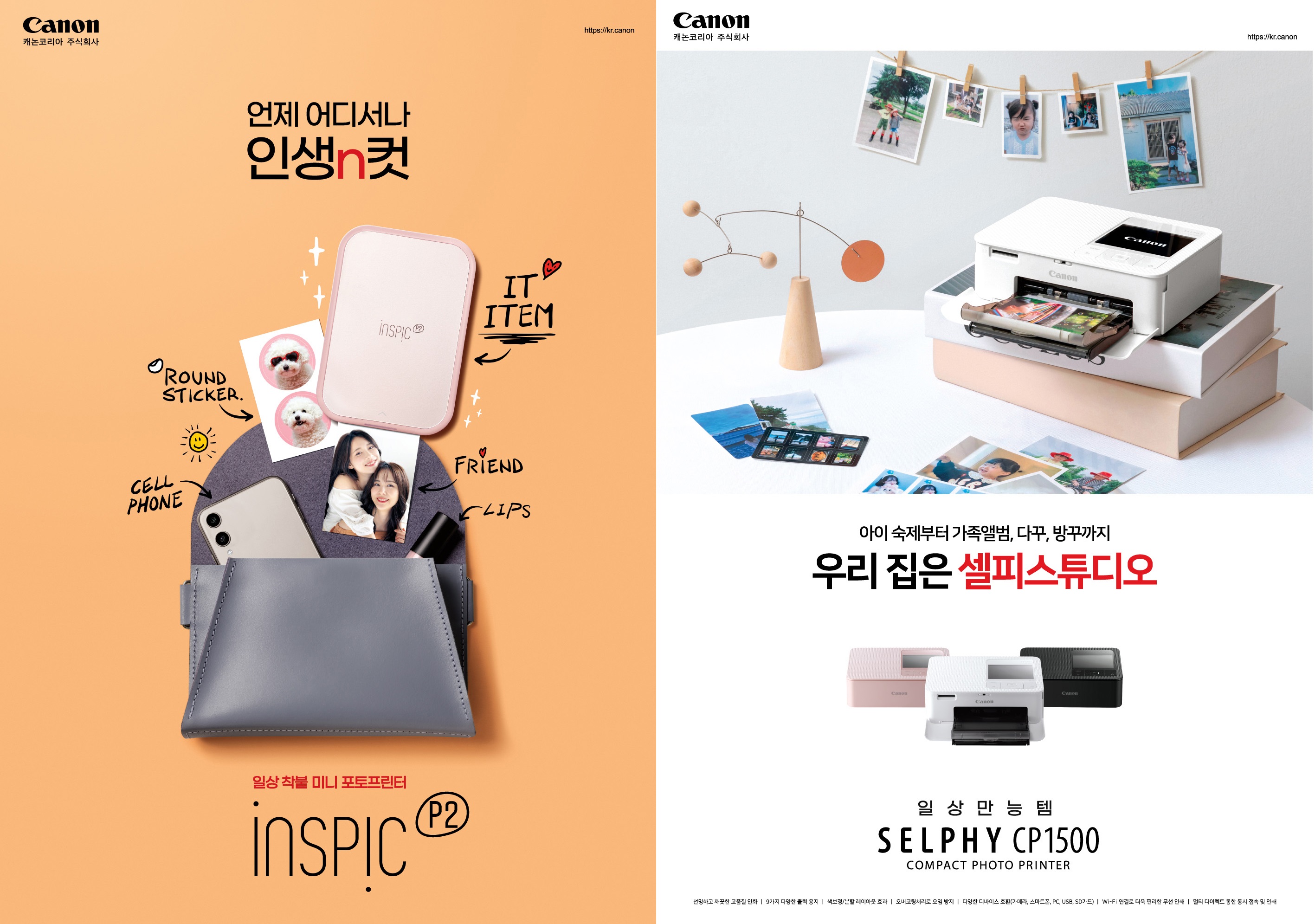 캐논코리아가 미니 포토 프린터 셀피 CP1500 및 인스픽 P2 2종을 출시했다.